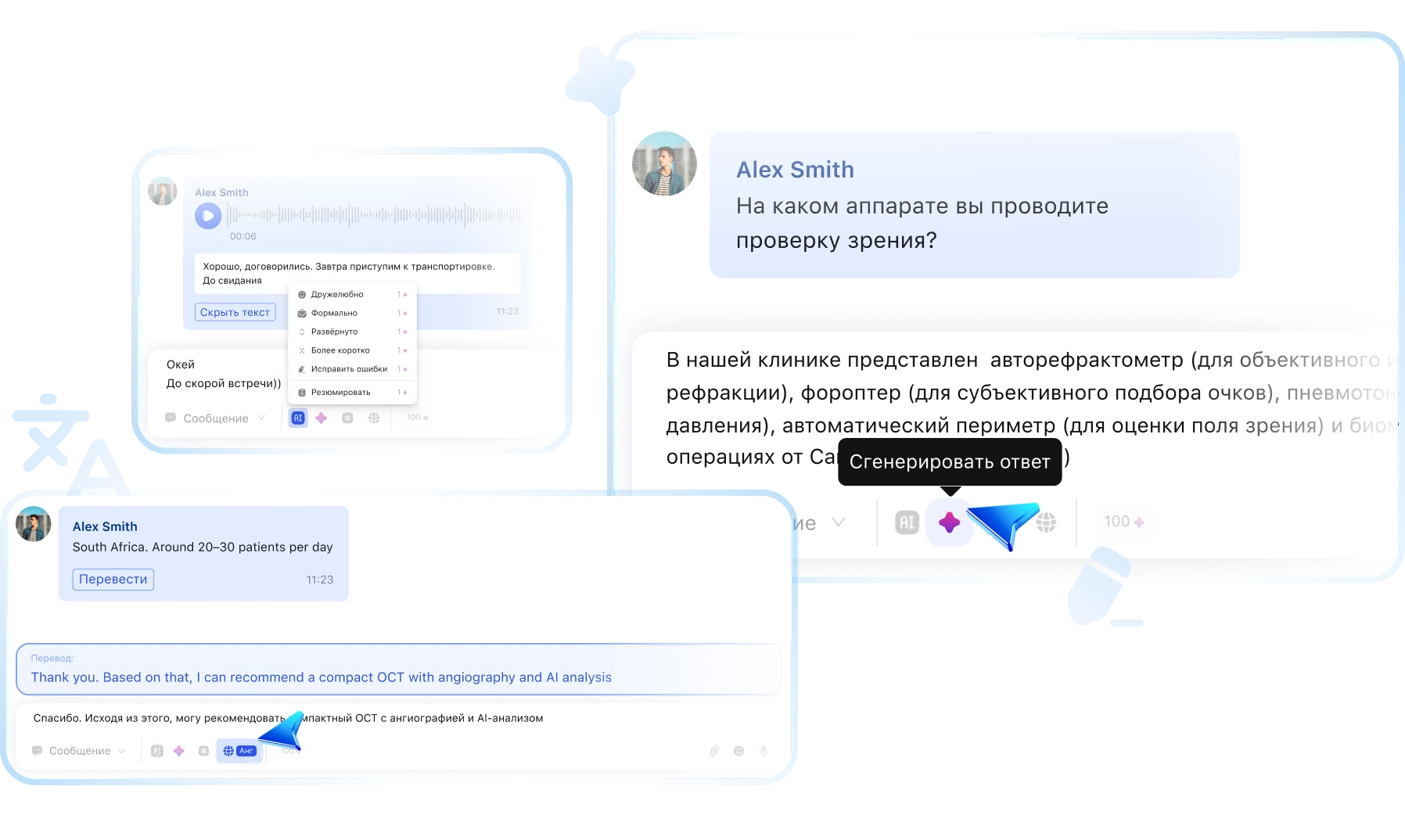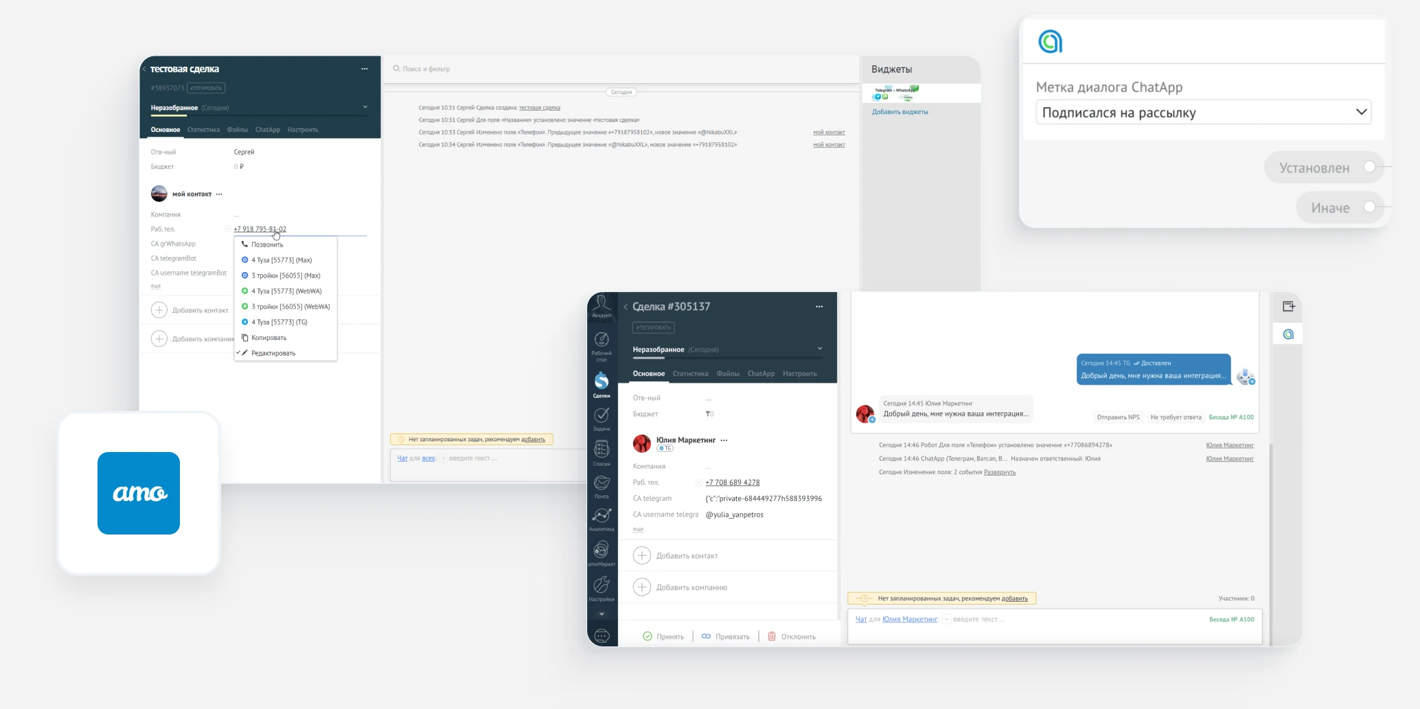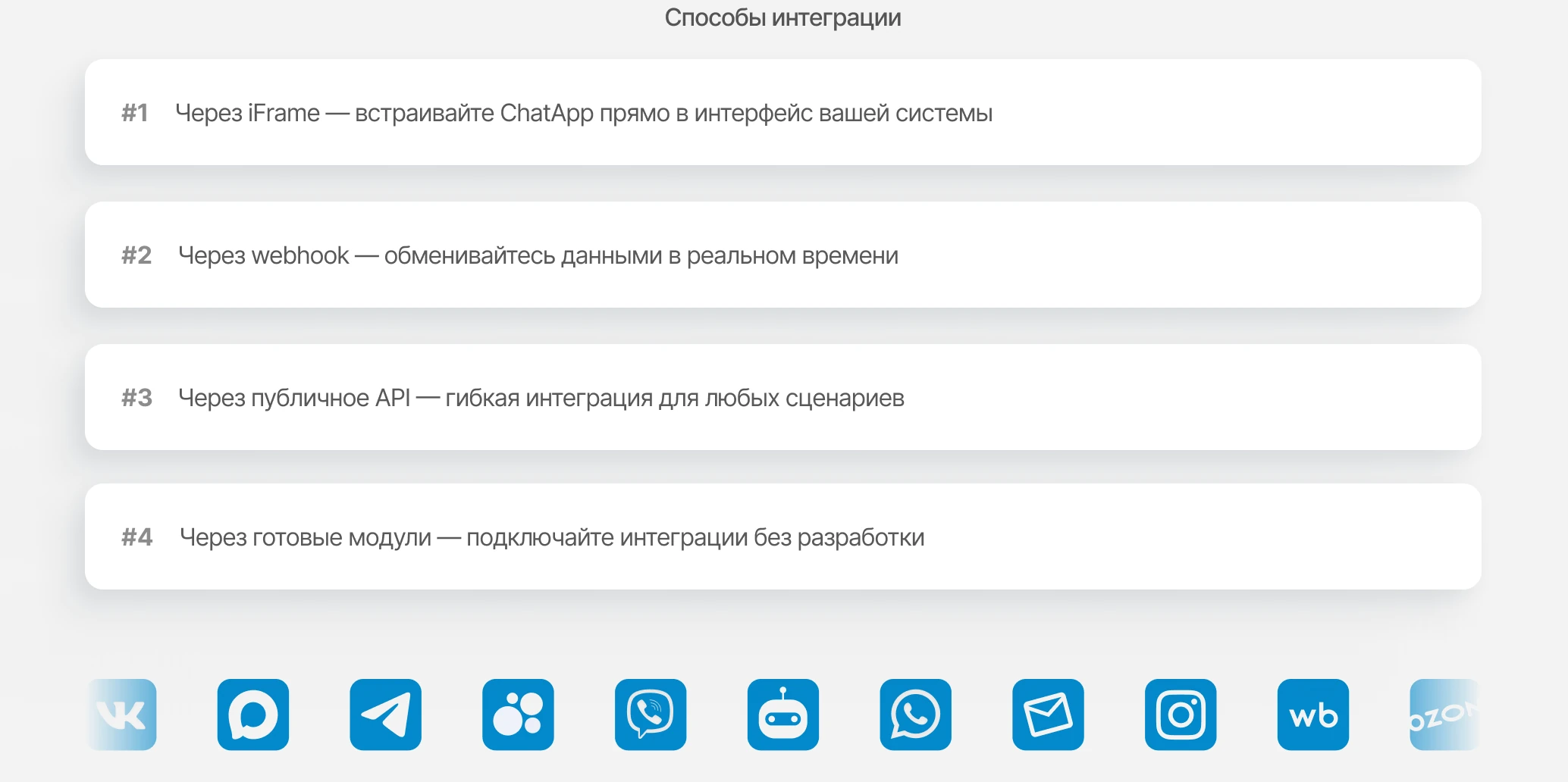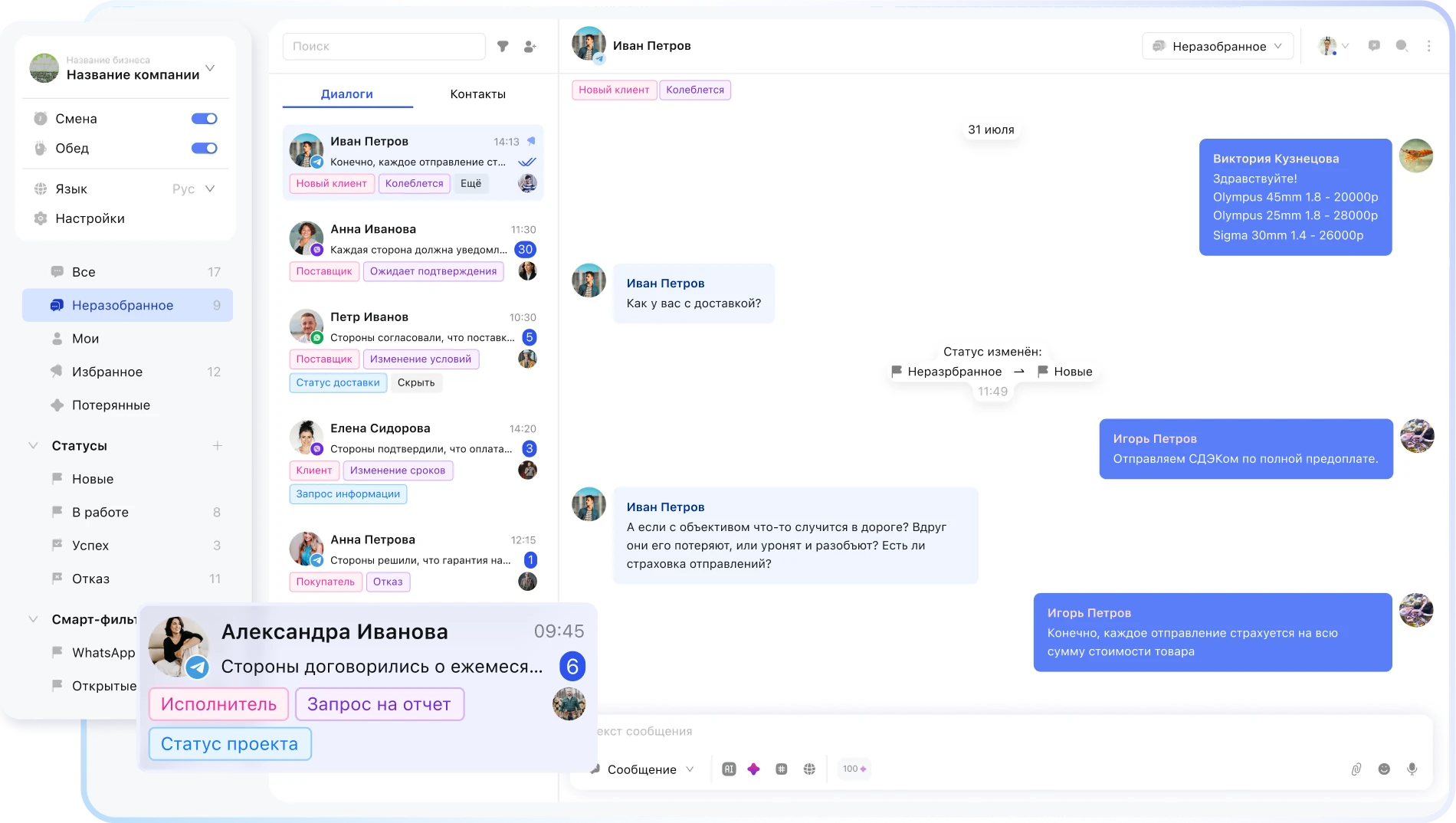 - Объединение всех обращений из мессенджеров, соц. сетей в одно окно