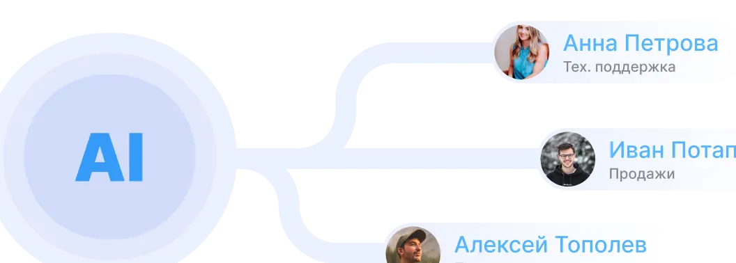 - Перераспределение диалогов на сотрудников