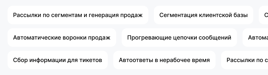 есть все необходимое для работы с ботами Вконтакте, Telegram, Viber, WhatsApp и email и достижения разнообразных задач