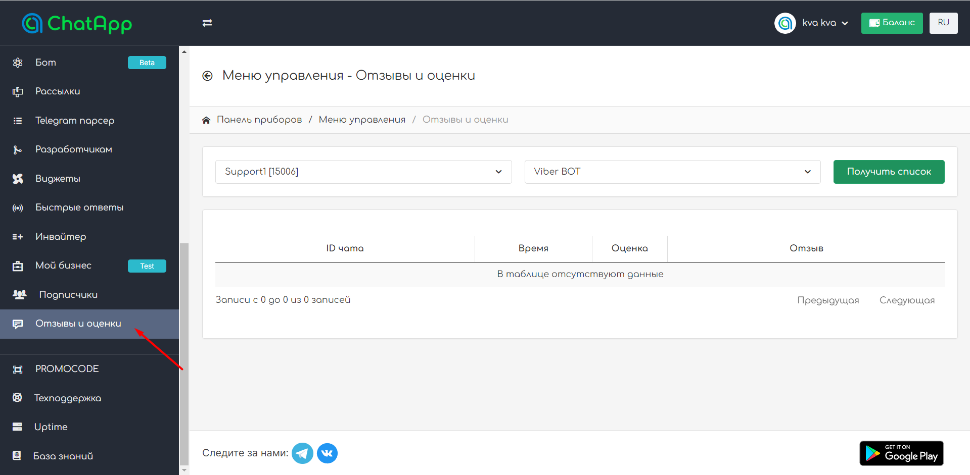 1️⃣ Личный кабинет → Бот → Больше → Работа с обратной связью