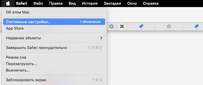 1. Нажмите на значок яблока  в левом верхнем углу экрана и выберите Системные настройки.