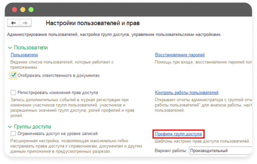 Configure roles and access rights in your 1C environment following the instructions