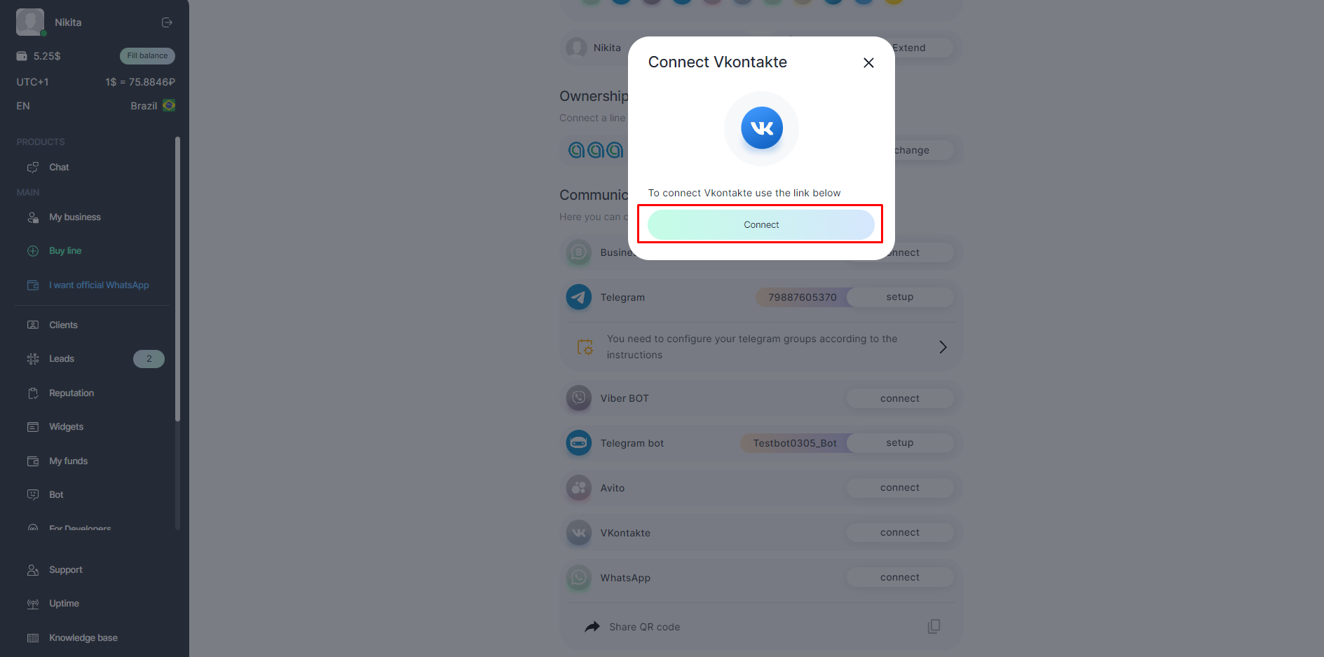 The VK (VKontakte) channel allows you to promptly respond to VK messenger messages, monitor chats and always stay in touch with your customers.