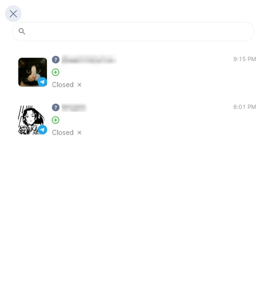 2. Click the «+» button in the list of all dialogs.
