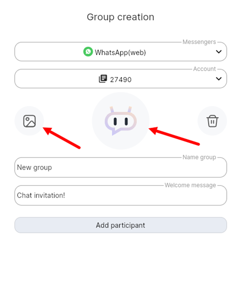For WhatsApp, you can choose an avatar for the group. Click the «Picture» icon or the center picture. Select and upload an image.