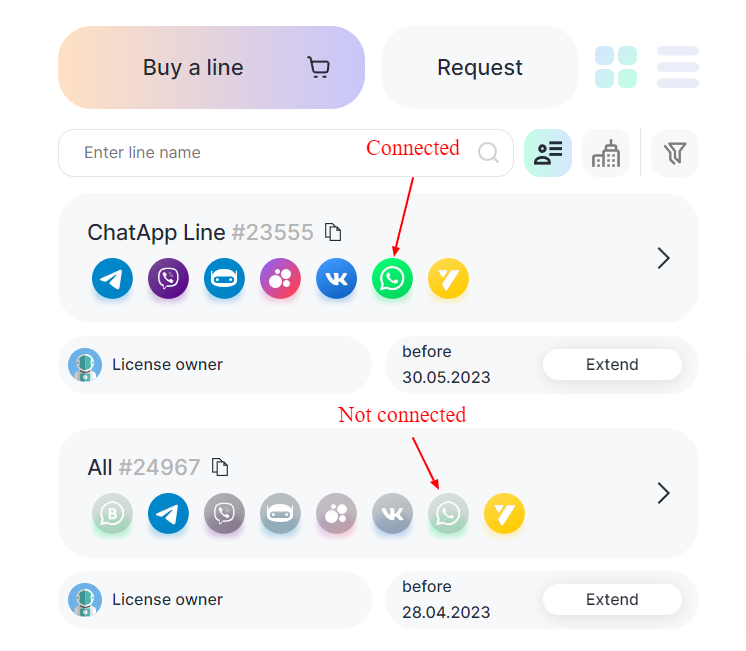 On the same page you can conveniently check the phone number or @username to which the messenger is bound. To do this, hover over the messenger icon. A window with information about the connected account will appear near the cursor. .