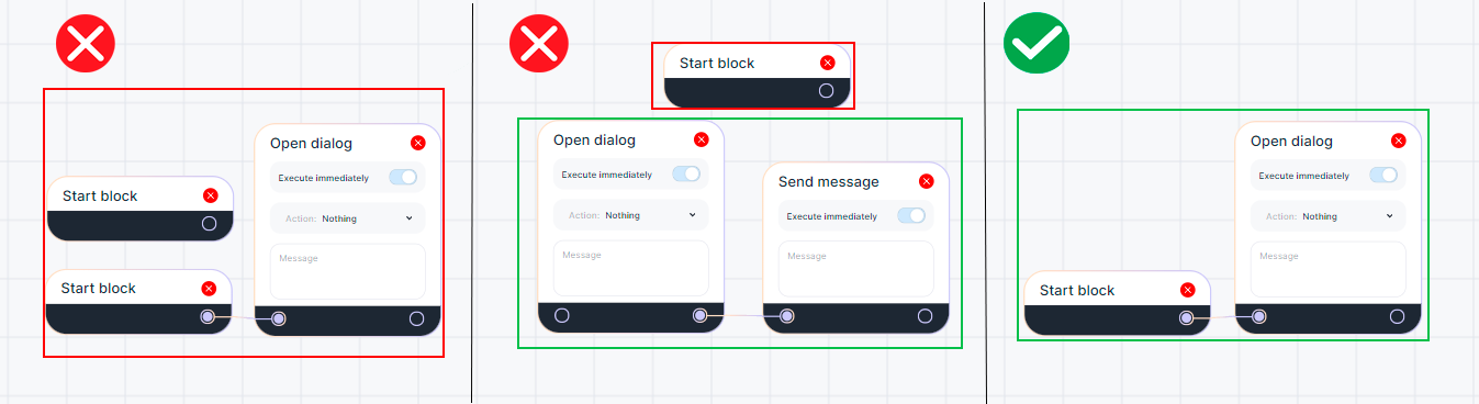 Except for the "Bot Subscription" and "Reaction to the Phrase" blocks, if they are outside the script, they will always be triggered when the condition specified in them is fulfilled.