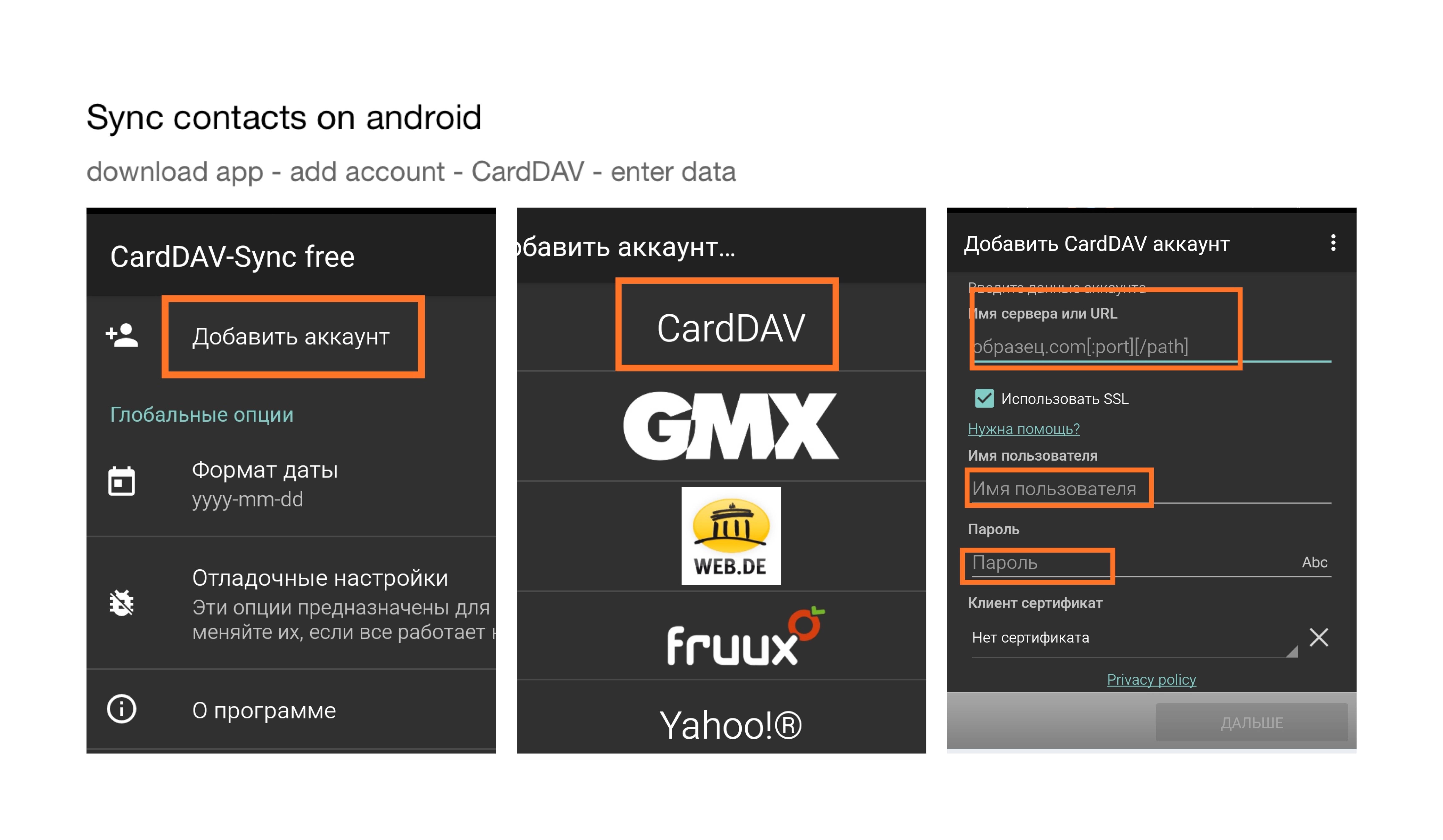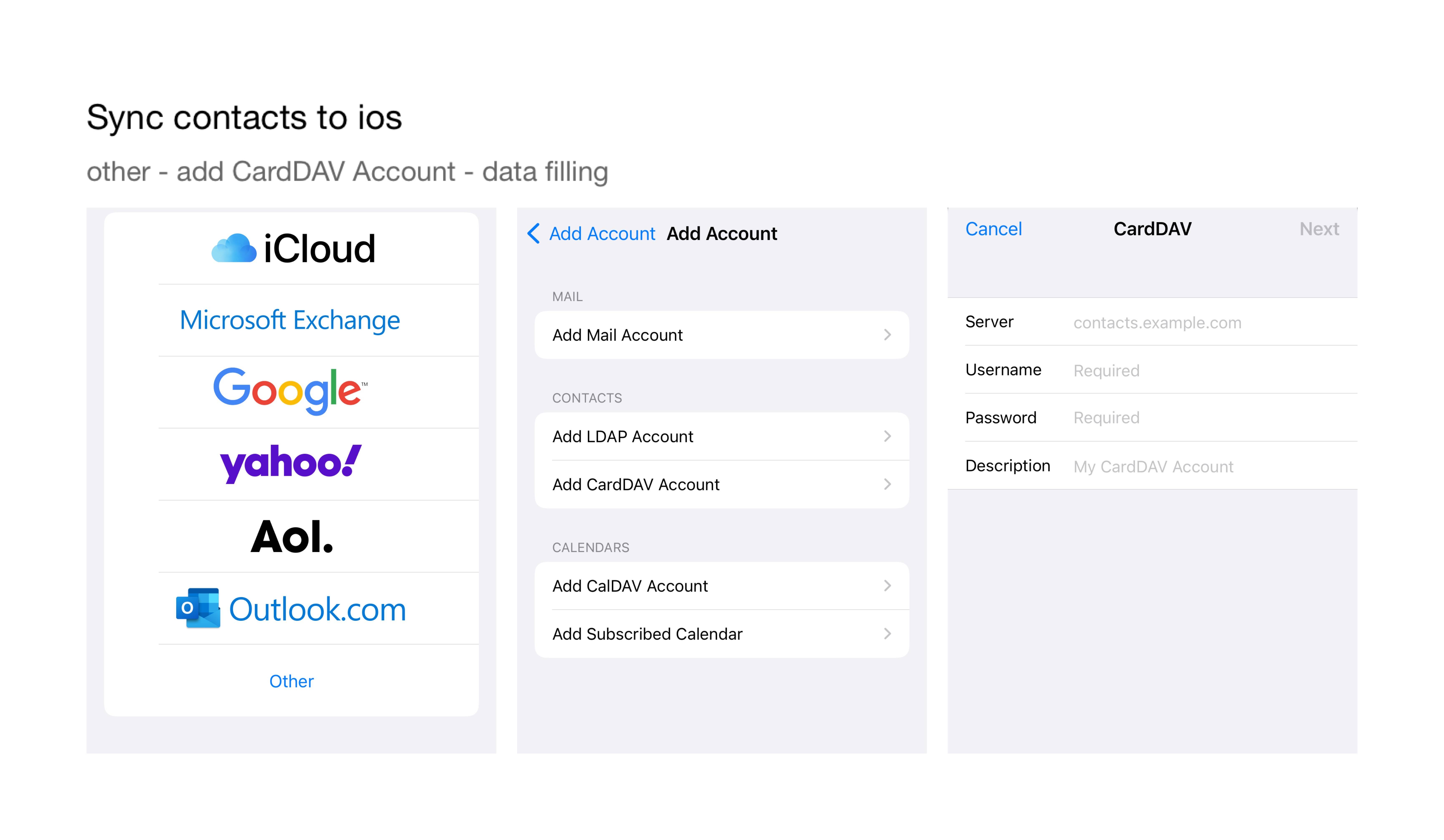 - Check the boxes for CardDAV sync contacts and navigate to your mobile device.