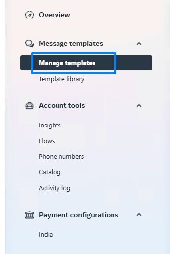 - In WhatsApp Manager, open the "Management Tools" tab and select "Message Templates".