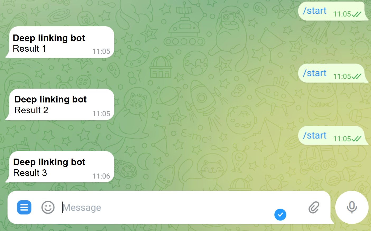 5. Enter the deep link into your browser's address bar. The application with the bot will open and the script will begin from the moment specified by the keyword.