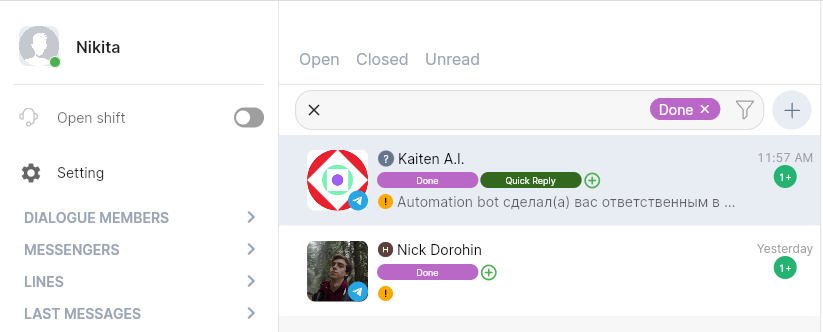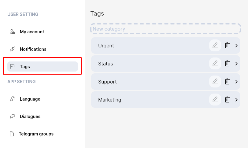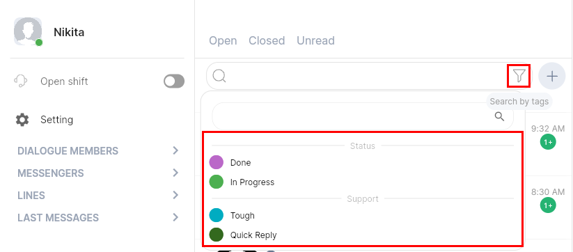 ChatApp uses interactive tags allowing you to tag dialogs by importance/urgency, types of clients/leads segmentation, assign your own unique categories, it will help all employees to see changes in chats immediately and to work more efficiently with dialogs and improve the time of their processing.
