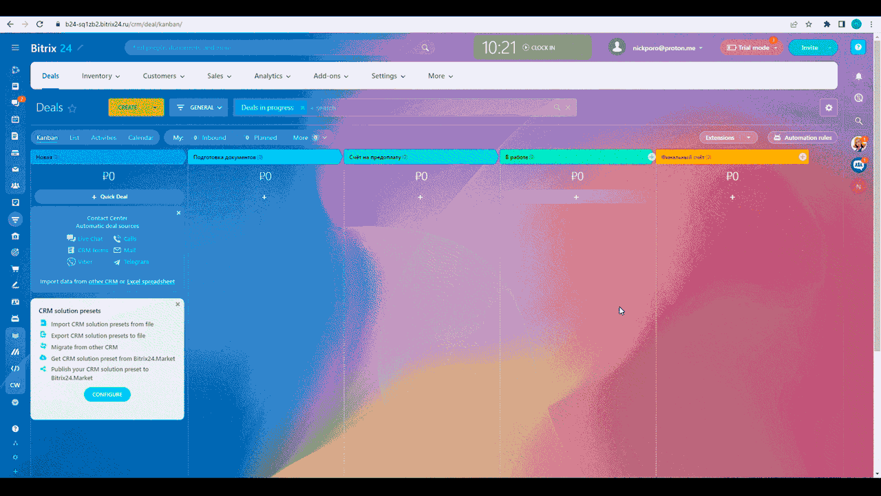 1. Log in to your Bitrix24 personal account and go to the "CRM" tab.