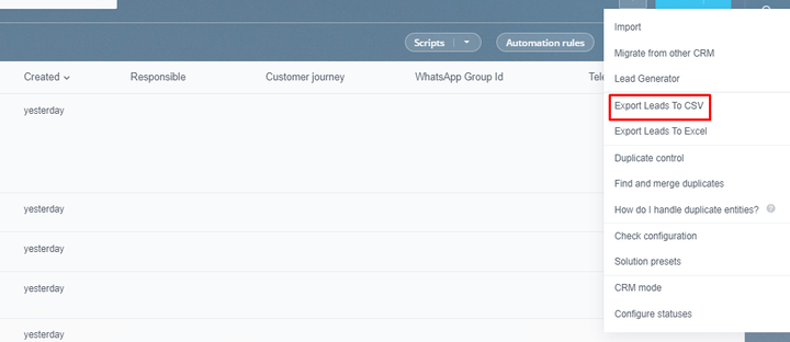 Export of contacts from Leads may be required when deal cards with individual contacts were not created separately.