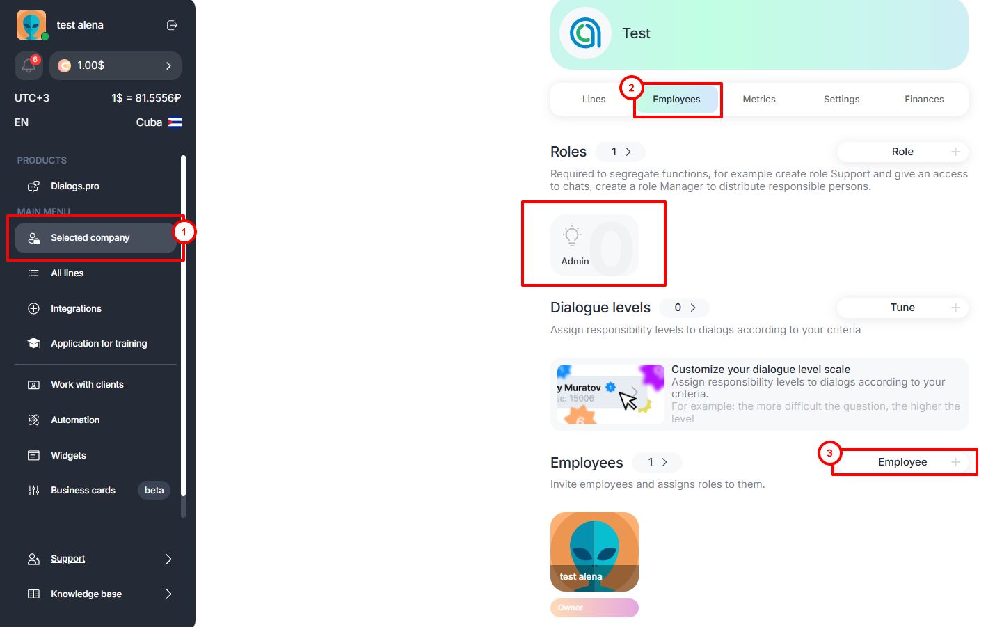 1. 1. Return to the Selected company section and go to the Employees tab.