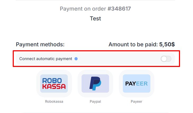 Automatic payment is a regular payment for the line. In order not to pay for the service manually, automatic payment can be activated when you choose to pay by card or company wallet. With auto-payment enabled, the first attempt to charge for line renewal is made 60 hours before the line expires. If the payment fails, the system will make up to three additional attempts every 12 hours to renew the line.