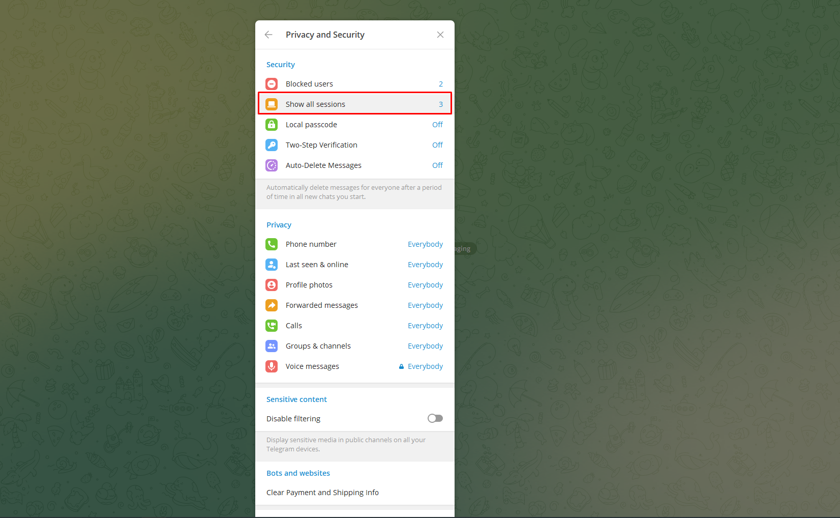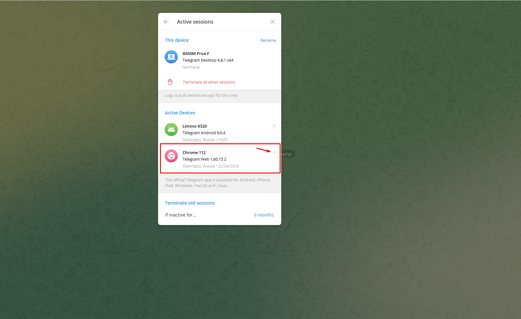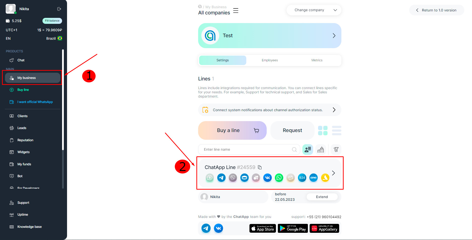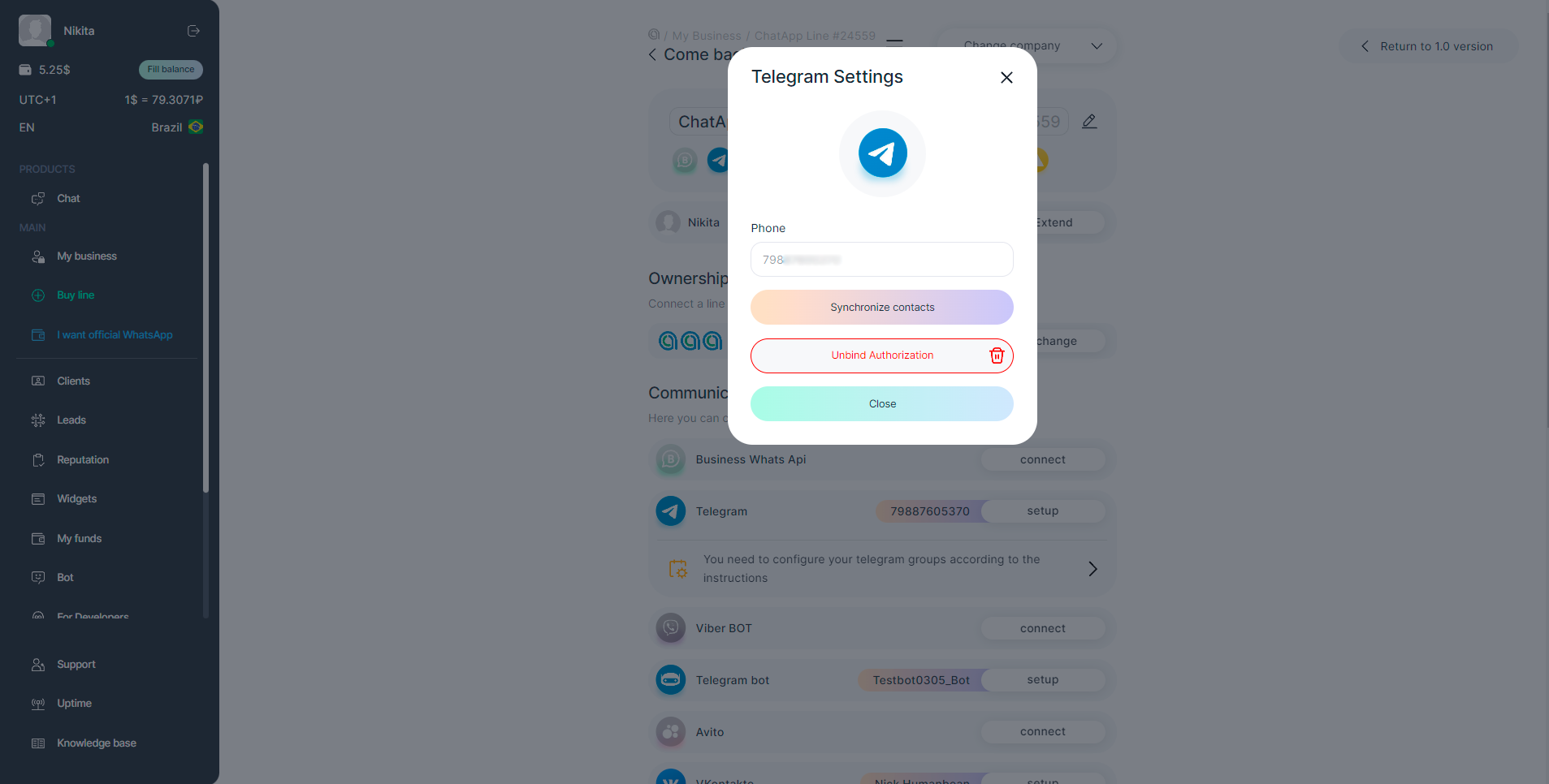 1. In your Personal account, go to the Selected company section, select the line with the connected Telegram personal.