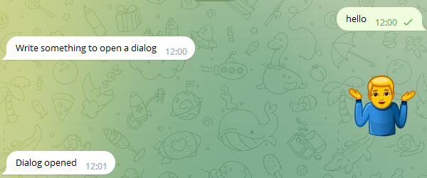 You can write a message that will be sent simultaneously with the opening of the dialog: