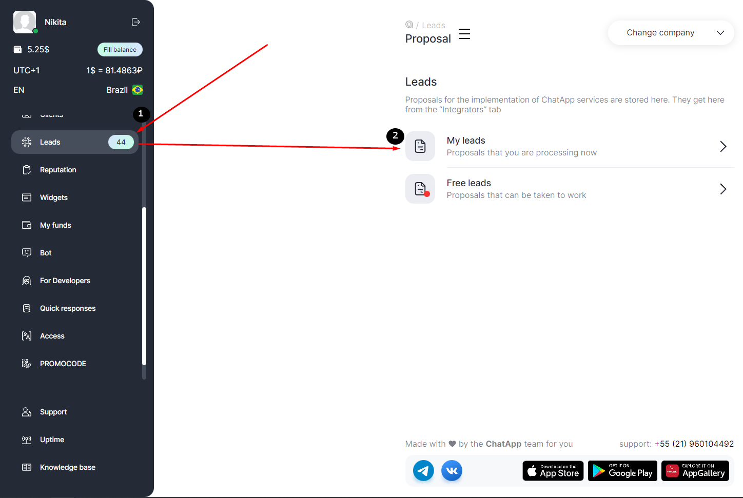 1. To view free leads, go to the «Leads» section.