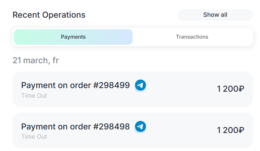 You can connect payment systems such as Robocass and T—Bank in your personal account. This will allow accepting customer payments using the "Payment Acceptance" block and then receiving payment information using the "Payment Information" block.
