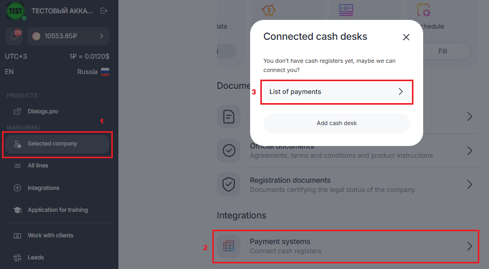 After making the payment, information about it will be displayed on the "Payment List" page. To view the list of payments, click "Selected company" — "Payment systems" — "List of payments".