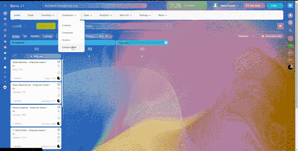2. Go to "CRM" in the menu on the left and find "Contact Center" in the "Deals" area or in the "Contacts" tab.
