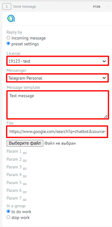 - specify a link to the file, for example, a picture - when sending a message with an image