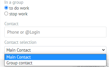 - If you need to send a message to a specific user, enter the number or @Login in the Contact field.