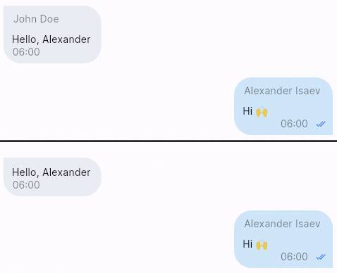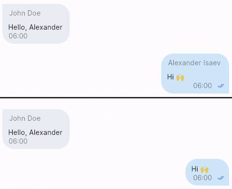 - Send icon press. The message is sent by clicking on the icon to the right of the message input line.