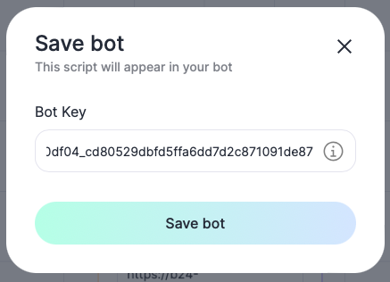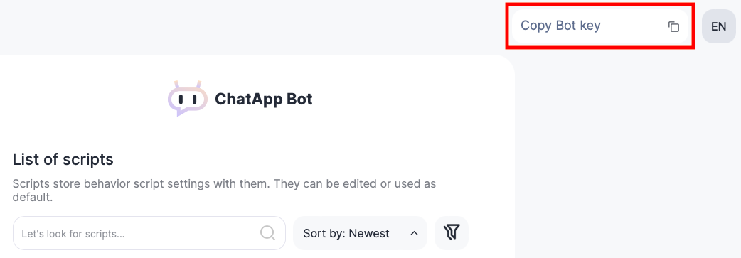 1. In the upper right corner of the script selection menu, click on “Copy Bot key”;
