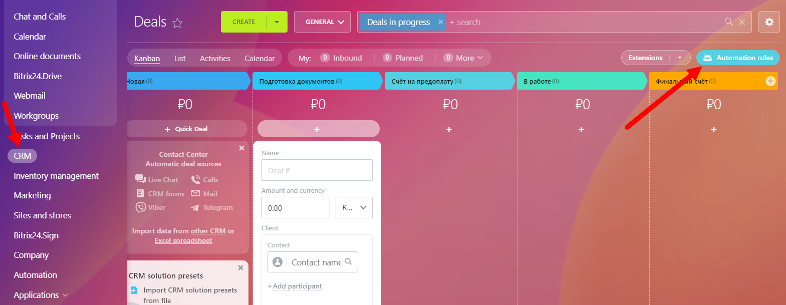 Ready! Now, after reading the client’s message, the deal will automatically move to the next stage, and employees will be able to continue working with the active deal.