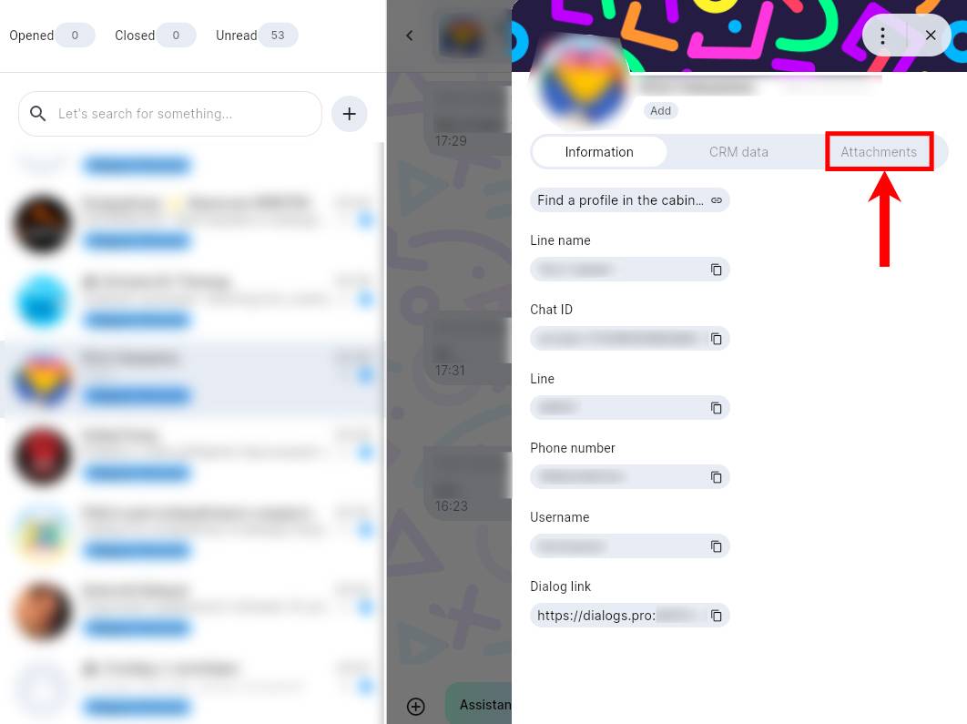 4. The tab will display the latest attachments from this dialog;