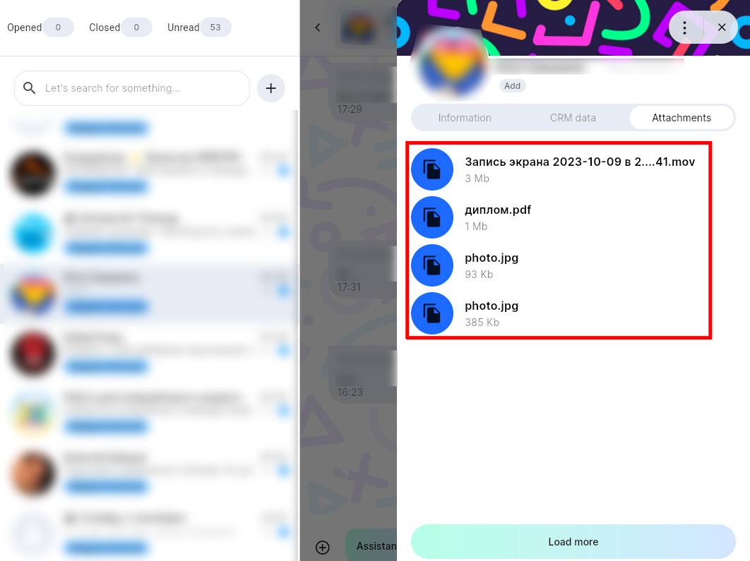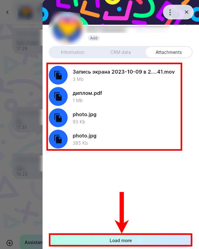 5. To see older attachments from the dialog, click "Load More".