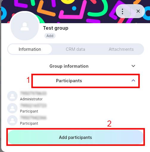 2. Click “Participants”. A menu of group members will open. Click “Add Participants”;