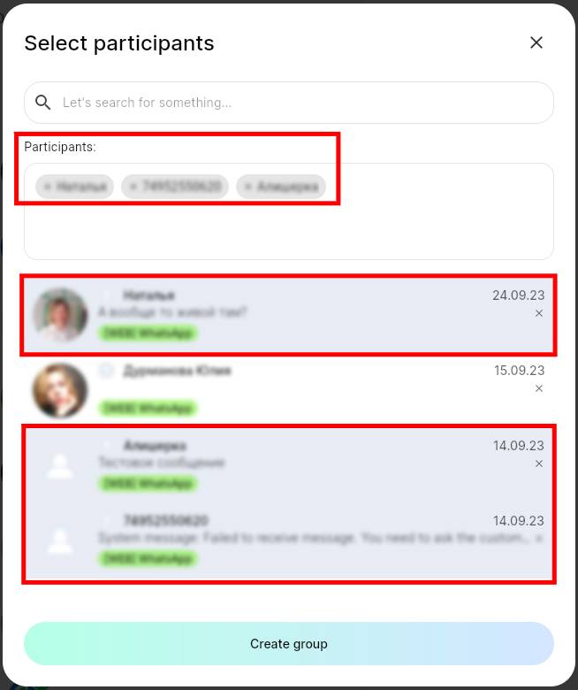 3. Set the name of the group. Select WhatsApp in the messenger selection field. Select a line. Click “Continue”;