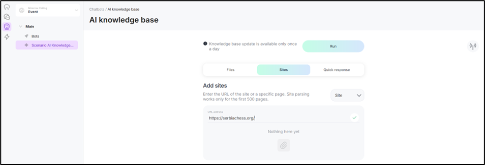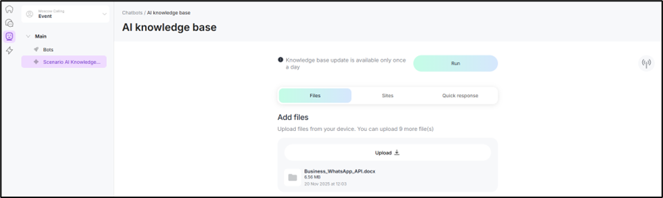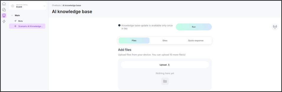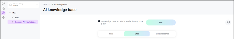- In the left menu of the page, select the section "Scenario AI Knowledge Base".