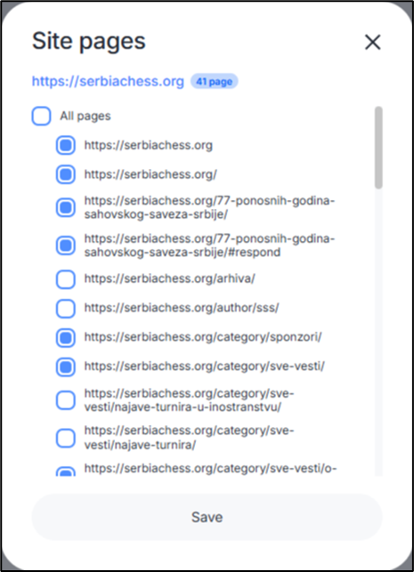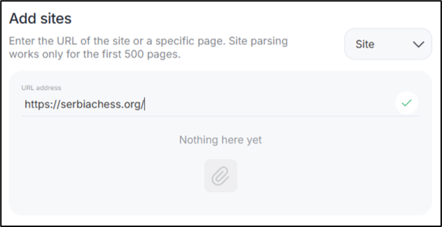 - Enter the URL of the website or a specific page. Website scraping only works for the first 500 pages.