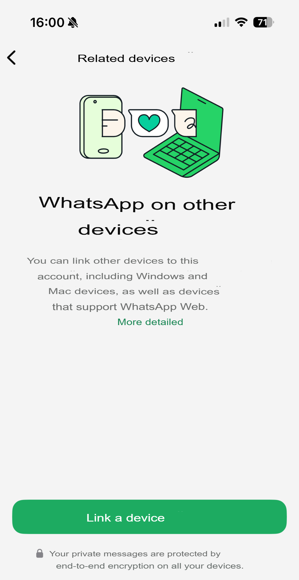 * iOS – Go to Settings. At the bottom of the screen, select "Linked Devices" — "Link device".