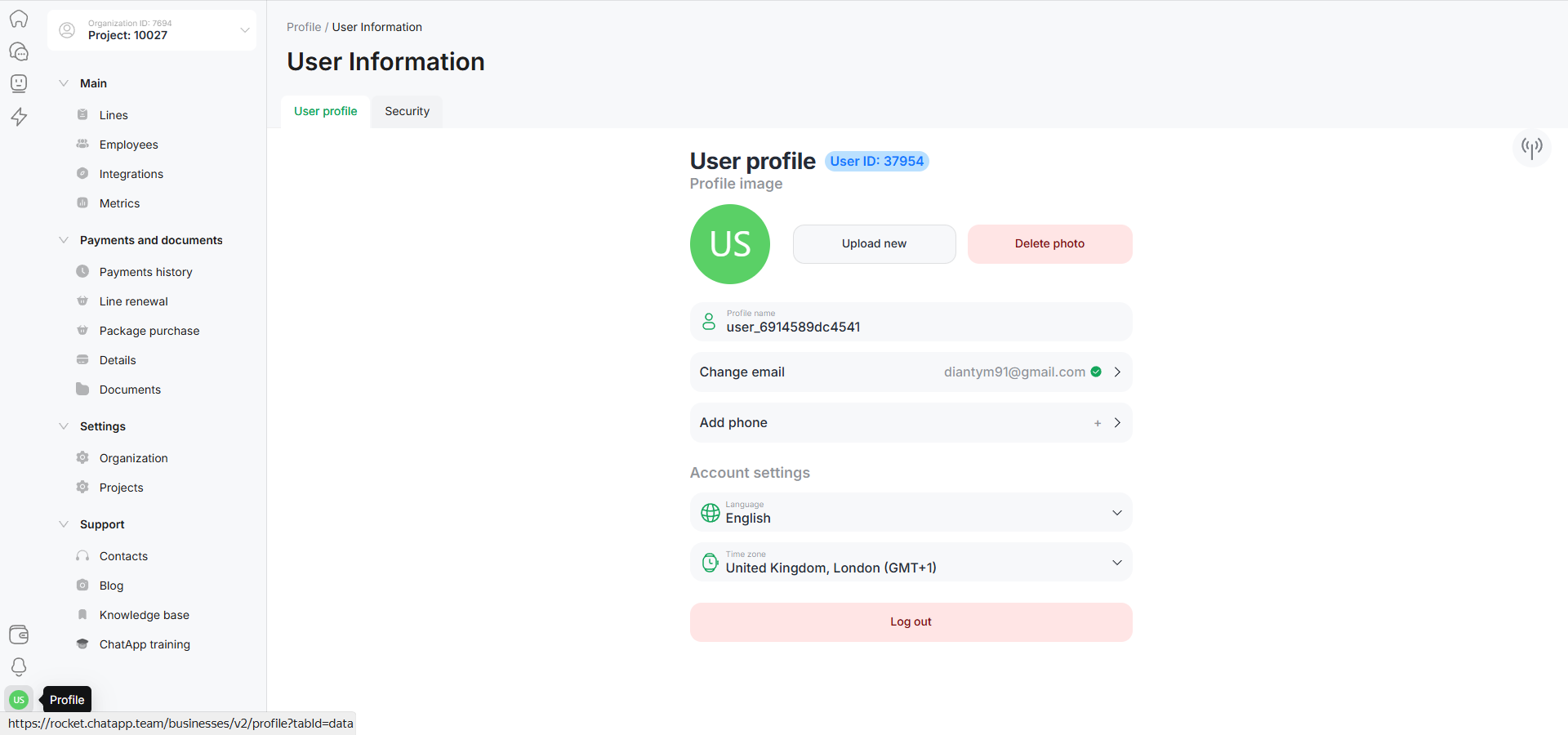 The profile user is the Chief Administrator for all Organizations and Projects created by him. You can rename Organizations and Projects, create new ones immediately, or do so later. For instructions, see the article "Creating and Configuring an Organization" And "Creating and configuring a Project". You can view and edit your personal information in your User Profile in the left sidebar of the page under the "Profile" button.