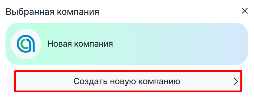 2. Нажмите на «Выбор компании» и во всплывающем окне выберите «Создать новую компанию».