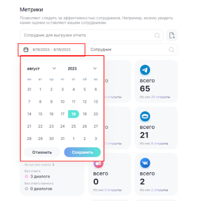 Показатели по диалогам помогают оценить загруженность и производительность сотрудников.