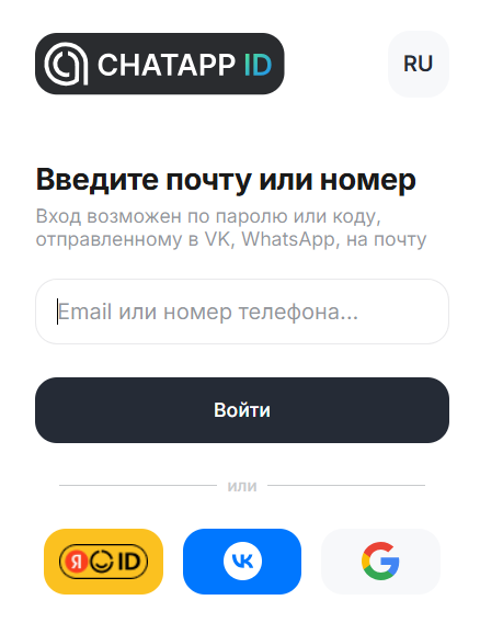 Также можно войти через Яндекс ID, VK ID или Google аккаунт.