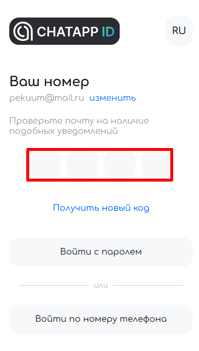 - Если входите по номеру телефона, введите код, который придет в смс, Telegram, WhatsApp и «Бизнес