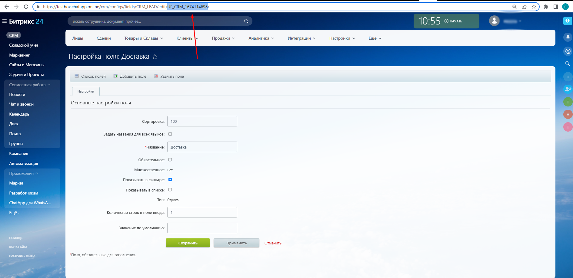 - В «key» введите «ID» сделки. И id поля в формате fields[UF_CRM_**********], чтобы Битрикс24 понимал, какую карточку и какое поле нужно изменить.