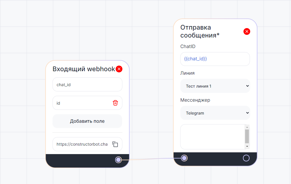 5. Добавьте нужные параметры. В нашем примере это chat_id и id. Они добавляются к ссылке через символ «&». Пример готовой ссылки на скриншоте: