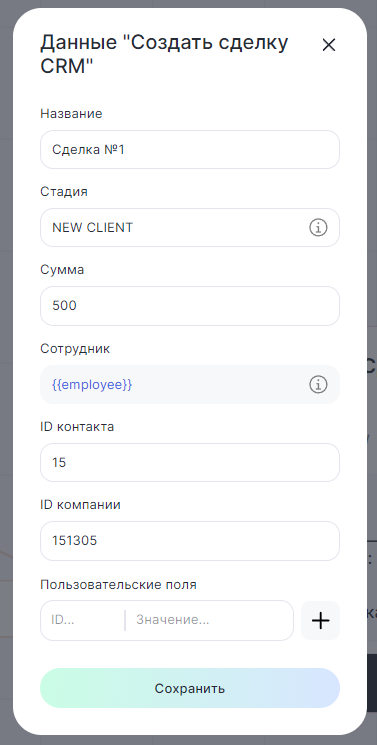 Создание сделки в CRM-системе через сценарий бота