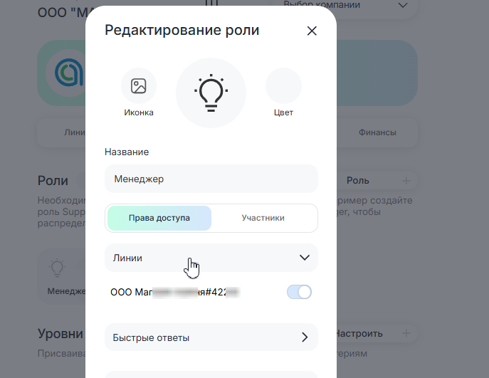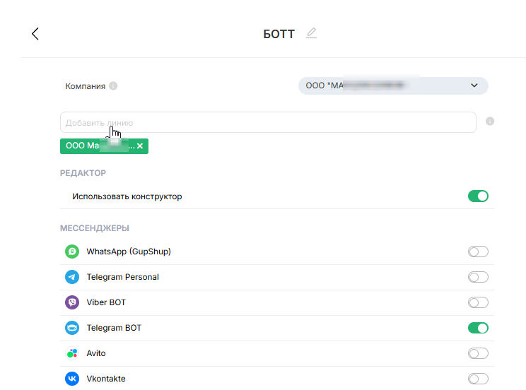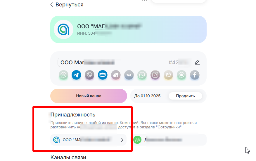 1. Линия принадлежит компании. Для этого выберите нужную линию и проверьте раздел «Принадлежность».