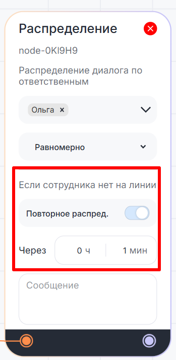 5. Выберите действие, если сотрудника нет на линии — будет ли срабатывать повторное распределение и через какое время.