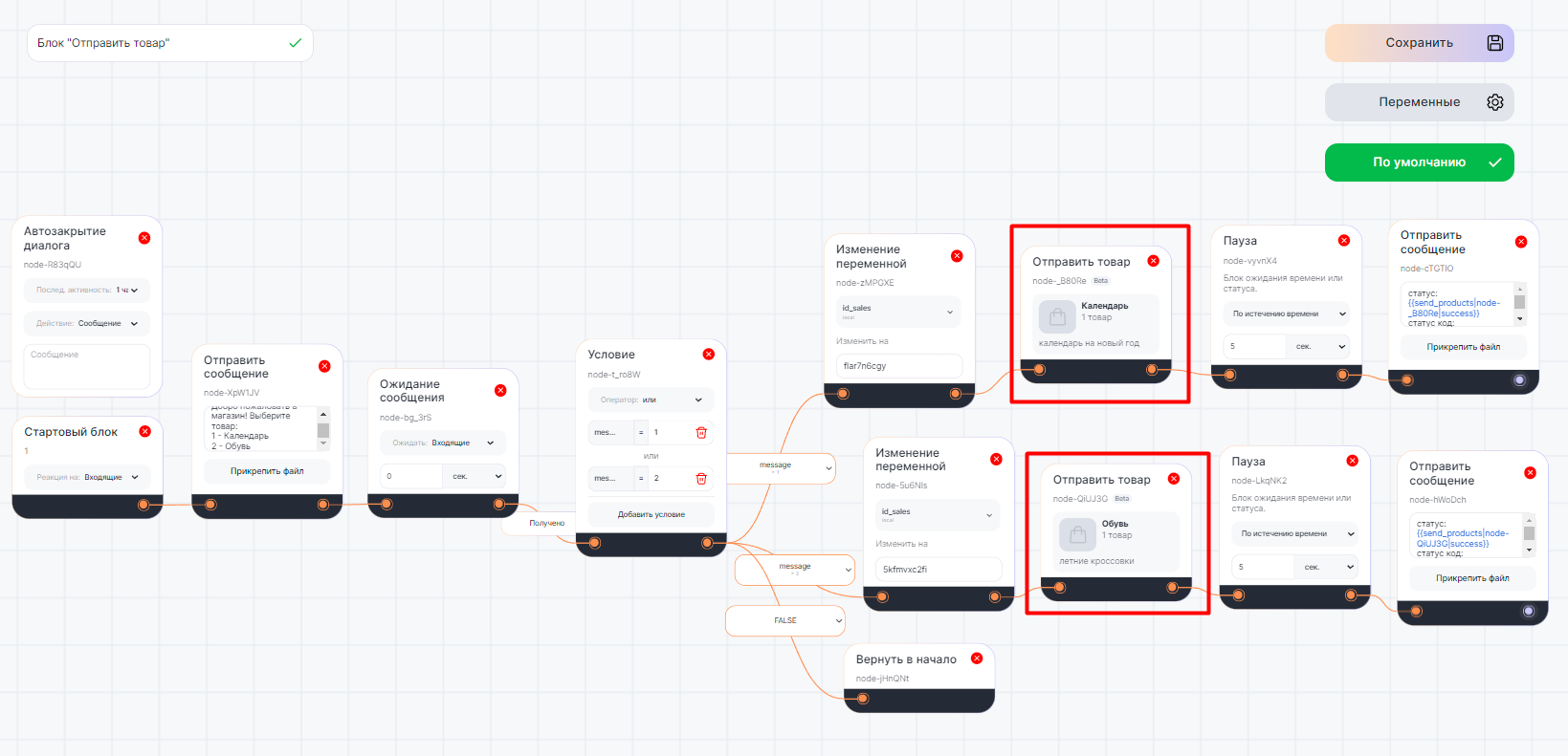 Пример сценария в Конструкторе ботов
