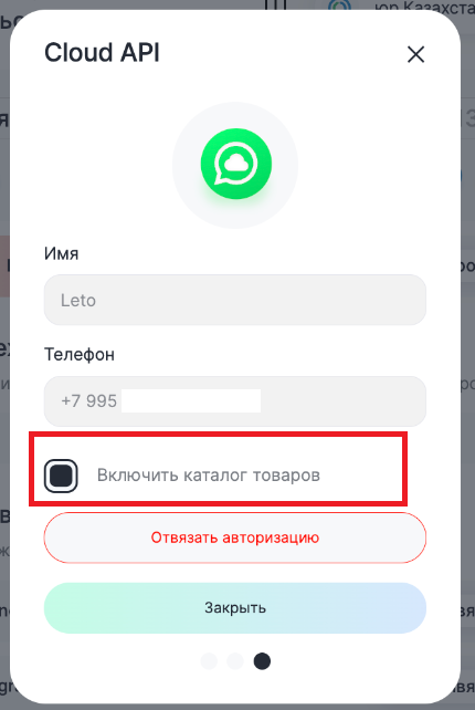 - для канала WACA нужно активировать опцию «Включить каталог товаров» в Личном кабинете ChatApp: