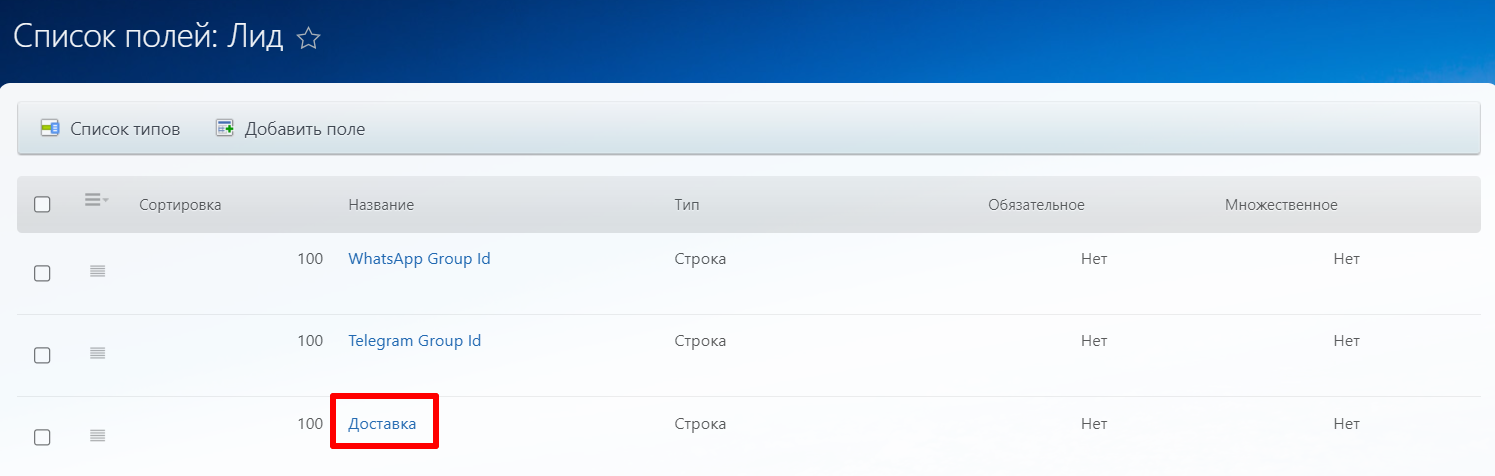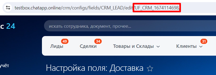 ID поля в CRM системе - поле в которое сохранится сообщение. Идентификатор этого поля необходимо взять в CRM.